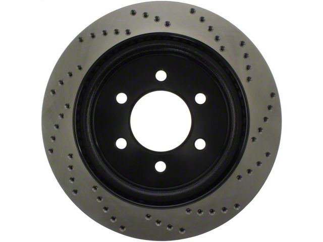 StopTech Drilled Sport Rotors are 1-piece direct replacement brake discs for factory brake systems and stock calipers that look great behind your wheels and offer significantly improved braking performance. The unique cross-drilling aids with heat and brake dust dispersal, prevents glazing of the pads, adds bite and improves wet and dry braking performance. Built to last, the black e-coating provides protection from corrosion and the high carbon metallurgy (in most applications) offers quieter operation, better crack resistance and increased performance.