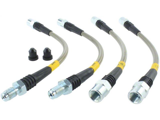StopTech Stainless Steel Braided Brake Lines provide a quicker, firmer, more consistent pedal response by maintaining consistent brake pressure. Additionally, stainless steel lines provide precision brake modulation, especially during threshold braking. The improvement in pedal feel is more dramatic on older vehicles where the factory rubber line may have softened and swelled due to age. A variety of end fittings are available to meet application needs. All fittings are engineered for proper fit and durability. All necessary brackets and fasteners are included with each line kit.
