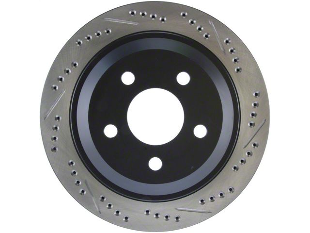 StopTech Drilled and Slotted Sport Rotors are 1-piece direct replacement brake discs for factory brake systems and stock calipers that look great behind your wheels and offer significantly improved braking performance. The unique cross-drilling and slotting aids with heat and brake dust dispersal, prevents glazing of the pads, adds bite and improves wet and dry braking performance. Built to last, the black e-coating provides protection from corrosion and the high carbon metallurgy (in most applications) offers quieter operation, better crack resistance and increased performance.