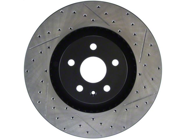 StopTech Drilled and Slotted Sport Rotors are 1-piece direct replacement brake discs for factory brake systems and stock calipers that look great behind your wheels and offer significantly improved braking performance. The unique cross-drilling and slotting aids with heat and brake dust dispersal; prevents glazing of the pads; adds bite and improves wet and dry braking performance. Built to last; the black e-coating provides protection from corrosion and the high carbon metallurgy (in most applications) offers quieter operation; better crack resistance and increased performance.