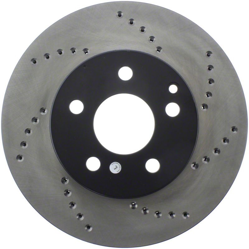 StopTech Drilled Sport Rotors are 1-piece direct replacement brake discs for factory brake systems and stock calipers that look great behind your wheels and offer significantly improved braking performance. The unique cross-drilling aids with heat and brake dust dispersal, prevents glazing of the pads, adds bite and improves wet and dry braking performance. Built to last, the black e-coating provides protection from corrosion and the high carbon metallurgy (in most applications) offers quieter operation, better crack resistance and increased performance.