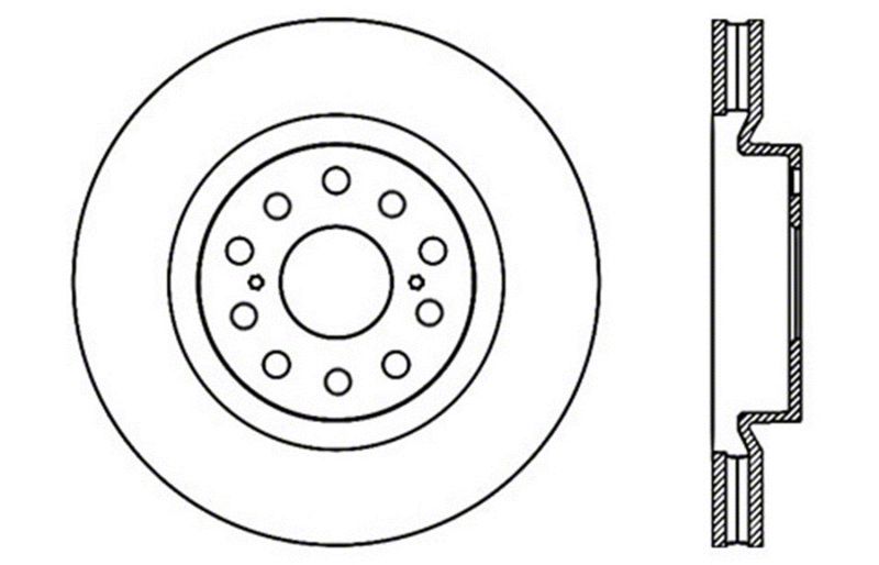 StopTech Drilled Sport Rotors are 1-piece direct replacement brake discs for factory brake systems and stock calipers that look great behind your wheels and offer significantly improved braking performance. The unique cross-drilling aids with heat and brake dust dispersal, prevents glazing of the pads, adds bite and improves wet and dry braking performance. Built to last, the black e-coating provides protection from corrosion and the high carbon metallurgy (in most applications) offers quieter operation, better crack resistance and increased performance.