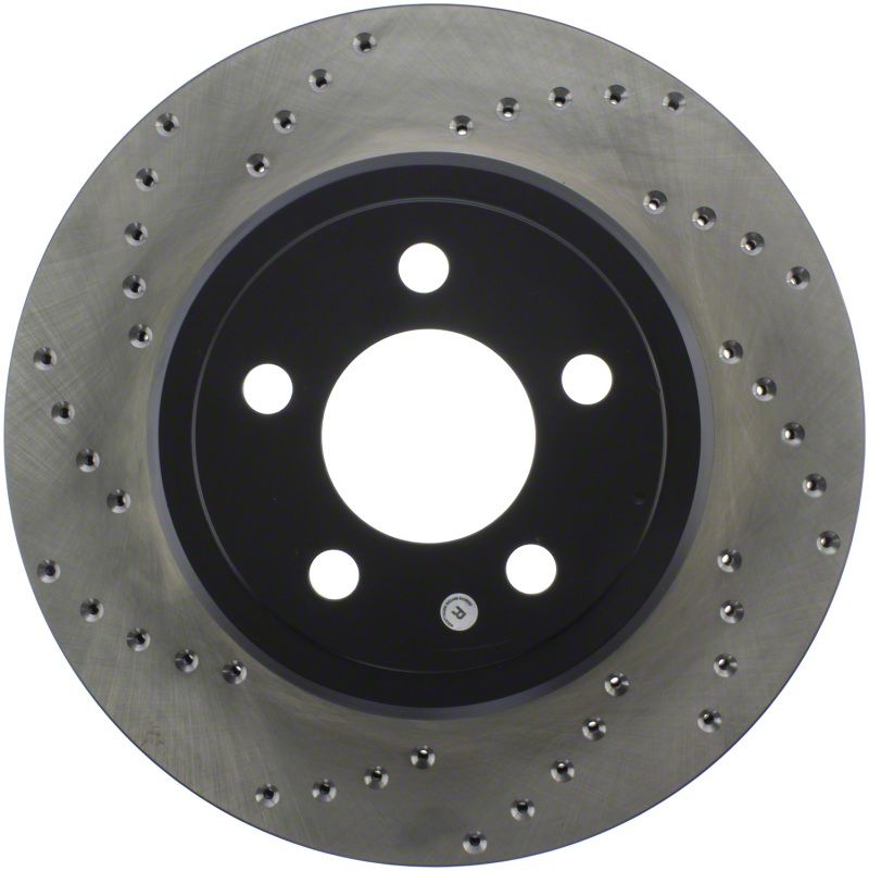StopTech Drilled Sport Rotors are 1-piece direct replacement brake discs for factory brake systems and stock calipers that look great behind your wheels and offer significantly improved braking performance. The unique cross-drilling aids with heat and brake dust dispersal, prevents glazing of the pads, adds bite and improves wet and dry braking performance. Built to last, the black e-coating provides protection from corrosion and the high carbon metallurgy (in most applications) offers quieter operation, better crack resistance and increased performance.