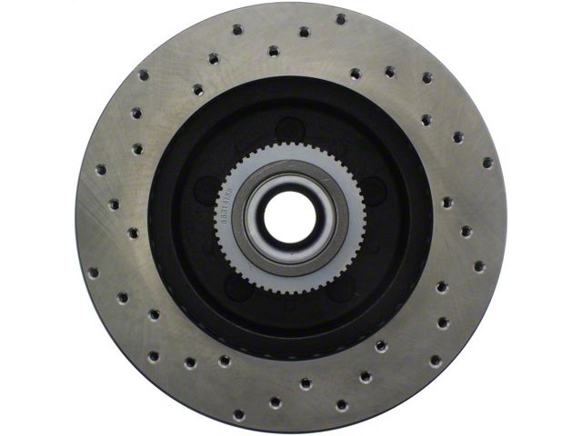 StopTech Drilled Sport Rotors are 1-piece direct replacement brake discs for factory brake systems and stock calipers that look great behind your wheels and offer significantly improved braking performance. The unique cross-drilling aids with heat and brake dust dispersal, prevents glazing of the pads, adds bite and improves wet and dry braking performance. Built to last, the black e-coating provides protection from corrosion and the high carbon metallurgy (in most applications) offers quieter operation, better crack resistance and increased performance.