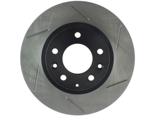 StopTech Slotted Sport Rotors are 1-piece direct replacement brake discs for factory brake systems and stock calipers that look great behind your wheels and offer significantly improved braking performance. The unique slotting aids with heat and brake dust dispersal; prevents glazing of the pads; adds bite and improves wet and dry braking performance. Built to last; the black e-coating provides protection from corrosion and the high carbon metallurgy (in most applications) offers quieter operation; better crack resistance and increased performance.