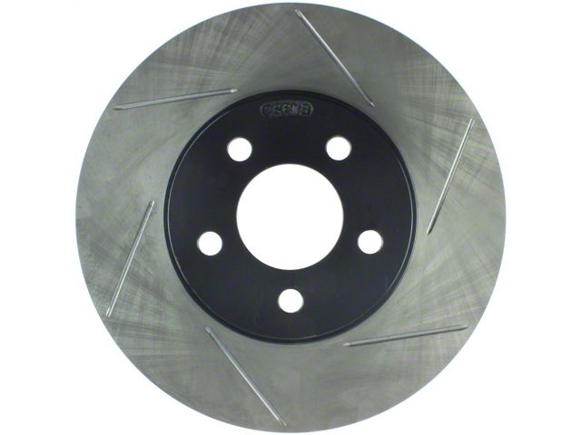 StopTech Slotted Sport Rotors are 1-piece direct replacement brake discs for factory brake systems and stock calipers that look great behind your wheels and offer significantly improved braking performance. The unique slotting aids with heat and brake dust dispersal; prevents glazing of the pads; adds bite and improves wet and dry braking performance. Built to last; the black e-coating provides protection from corrosion and the high carbon metallurgy (in most applications) offers quieter operation; better crack resistance and increased performance.