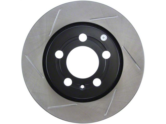 StopTech Slotted Sport Rotors are 1-piece direct replacement brake discs for factory brake systems and stock calipers that look great behind your wheels and offer significantly improved braking performance. The unique slotting aids with heat and brake dust dispersal; prevents glazing of the pads; adds bite and improves wet and dry braking performance. Built to last; the black e-coating provides protection from corrosion and the high carbon metallurgy (in most applications) offers quieter operation; better crack resistance and increased performance.