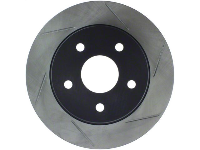 StopTech Slotted Sport Rotors are 1-piece direct replacement brake discs for factory brake systems and stock calipers that look great behind your wheels and offer significantly improved braking performance. The unique slotting aids with heat and brake dust dispersal, prevents glazing of the pads, adds bite and improves wet and dry braking performance. Built to last, the black e-coating provides protection from corrosion and the high carbon metallurgy (in most applications) offers quieter operation, better crack resistance and increased performance.