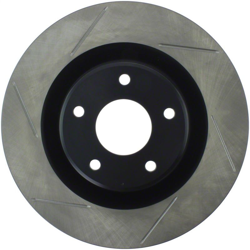 StopTech Slotted Sport Rotors are 1-piece direct replacement brake discs for factory brake systems and stock calipers that look great behind your wheels and offer significantly improved braking performance. The unique slotting aids with heat and brake dust dispersal; prevents glazing of the pads; adds bite and improves wet and dry braking performance. Built to last; the black e-coating provides protection from corrosion and the high carbon metallurgy (in most applications) offers quieter operation; better crack resistance and increased performance.