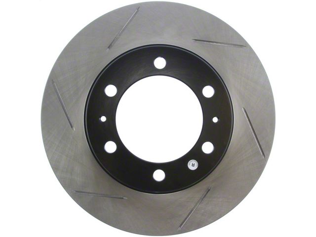 StopTech Slotted Sport Rotors are 1-piece direct replacement brake discs for factory brake systems and stock calipers that look great behind your wheels and offer significantly improved braking performance. The unique slotting aids with heat and brake dust dispersal; prevents glazing of the pads; adds bite and improves wet and dry braking performance. Built to last; the black e-coating provides protection from corrosion and the high carbon metallurgy (in most applications) offers quieter operation; better crack resistance and increased performance.