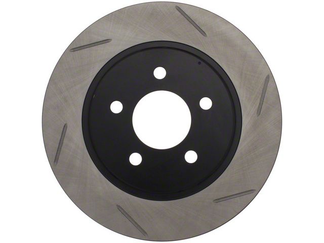 StopTech Slotted Sport Rotors are 1-piece direct replacement brake discs for factory brake systems and stock calipers that look great behind your wheels and offer significantly improved braking performance. The unique slotting aids with heat and brake dust dispersal; prevents glazing of the pads; adds bite and improves wet and dry braking performance. Built to last; the black e-coating provides protection from corrosion and the high carbon metallurgy (in most applications) offers quieter operation; better crack resistance and increased performance.