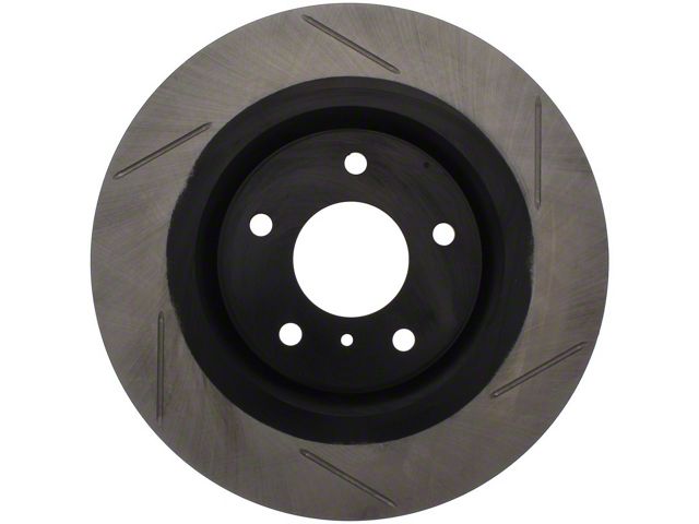 StopTech Slotted Sport Rotors are 1-piece direct replacement brake discs for factory brake systems and stock calipers that look great behind your wheels and offer significantly improved braking performance. The unique slotting aids with heat and brake dust dispersal; prevents glazing of the pads; adds bite and improves wet and dry braking performance. Built to last; the black e-coating provides protection from corrosion and the high carbon metallurgy (in most applications) offers quieter operation; better crack resistance and increased performance.