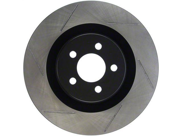 StopTech Slotted Sport Rotors are 1-piece direct replacement brake discs for factory brake systems and stock calipers that look great behind your wheels and offer significantly improved braking performance. The unique slotting aids with heat and brake dust dispersal; prevents glazing of the pads; adds bite and improves wet and dry braking performance. Built to last; the black e-coating provides protection from corrosion and the high carbon metallurgy (in most applications) offers quieter operation; better crack resistance and increased performance.