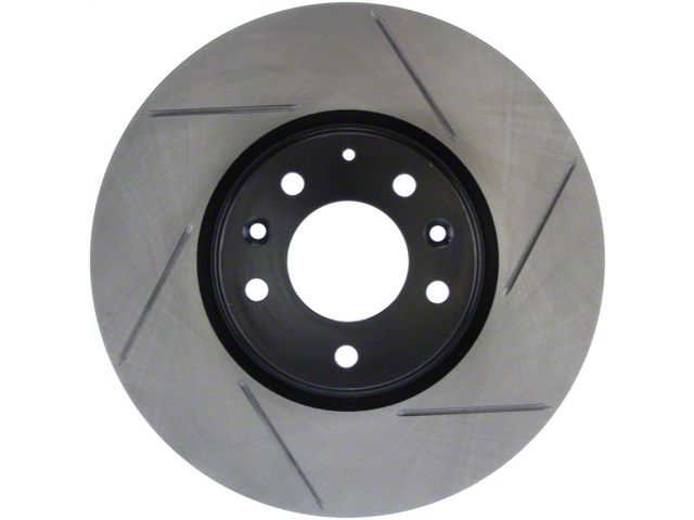 StopTech Slotted Sport Rotors are 1-piece direct replacement brake discs for factory brake systems and stock calipers that look great behind your wheels and offer significantly improved braking performance. The unique slotting aids with heat and brake dust dispersal; prevents glazing of the pads; adds bite and improves wet and dry braking performance. Built to last; the black e-coating provides protection from corrosion and the high carbon metallurgy (in most applications) offers quieter operation; better crack resistance and increased performance.