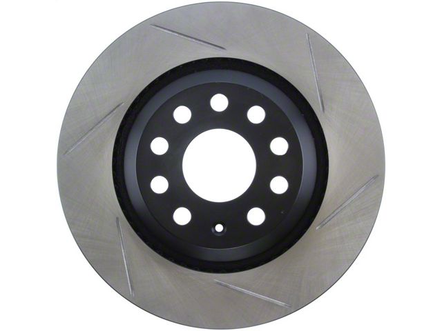 StopTech Slotted Sport Rotors are 1-piece direct replacement brake discs for factory brake systems and stock calipers that look great behind your wheels and offer significantly improved braking performance. The unique slotting aids with heat and brake dust dispersal; prevents glazing of the pads; adds bite and improves wet and dry braking performance. Built to last; the black e-coating provides protection from corrosion and the high carbon metallurgy (in most applications) offers quieter operation; better crack resistance and increased performance.