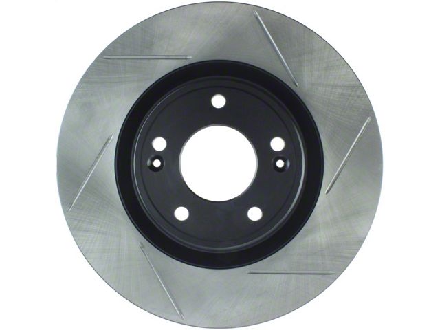 StopTech Slotted Sport Rotors are 1-piece direct replacement brake discs for factory brake systems and stock calipers that look great behind your wheels and offer significantly improved braking performance. The unique slotting aids with heat and brake dust dispersal; prevents glazing of the pads; adds bite and improves wet and dry braking performance. Built to last; the black e-coating provides protection from corrosion and the high carbon metallurgy (in most applications) offers quieter operation; better crack resistance and increased performance.
