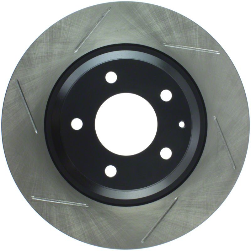 StopTech Slotted Sport Rotors are 1-piece direct replacement brake discs for factory brake systems and stock calipers that look great behind your wheels and offer significantly improved braking performance. The unique slotting aids with heat and brake dust dispersal; prevents glazing of the pads; adds bite and improves wet and dry braking performance. Built to last; the black e-coating provides protection from corrosion and the high carbon metallurgy (in most applications) offers quieter operation; better crack resistance and increased performance.