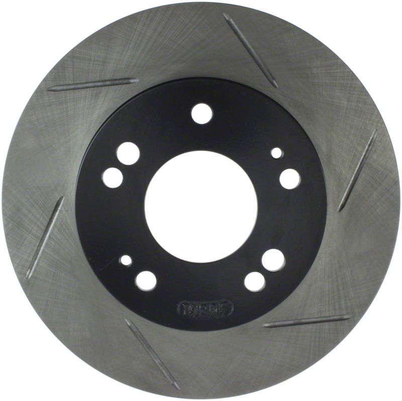 StopTech Slotted Sport Rotors are 1-piece direct replacement brake discs for factory brake systems and stock calipers that look great behind your wheels and offer significantly improved braking performance. The unique slotting aids with heat and brake dust dispersal; prevents glazing of the pads; adds bite and improves wet and dry braking performance. Built to last; the black e-coating provides protection from corrosion and the high carbon metallurgy (in most applications) offers quieter operation; better crack resistance and increased performance.