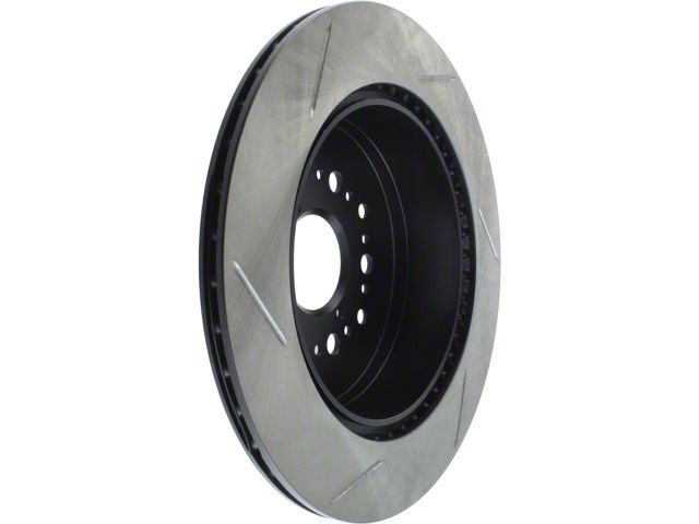 StopTech Slotted Sport Rotors are 1-piece direct replacement brake discs for factory brake systems and stock calipers that look great behind your wheels and offer significantly improved braking performance. The unique slotting aids with heat and brake dust dispersal; prevents glazing of the pads; adds bite and improves wet and dry braking performance. Built to last; the black e-coating provides protection from corrosion and the high carbon metallurgy (in most applications) offers quieter operation; better crack resistance and increased performance.