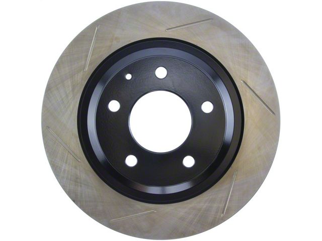 StopTech Slotted Sport Rotors are 1-piece direct replacement brake discs for factory brake systems and stock calipers that look great behind your wheels and offer significantly improved braking performance. The unique slotting aids with heat and brake dust dispersal; prevents glazing of the pads; adds bite and improves wet and dry braking performance. Built to last; the black e-coating provides protection from corrosion and the high carbon metallurgy (in most applications) offers quieter operation; better crack resistance and increased performance.