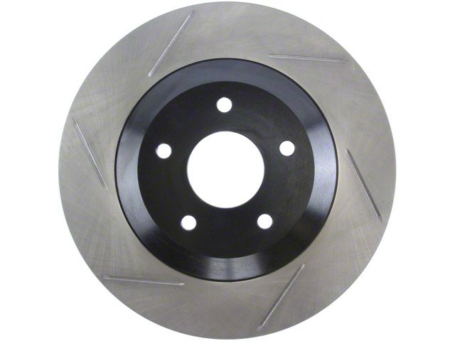 StopTech Slotted Sport Rotors are 1-piece direct replacement brake discs for factory brake systems and stock calipers that look great behind your wheels and offer significantly improved braking performance. The unique slotting aids with heat and brake dust dispersal; prevents glazing of the pads; adds bite and improves wet and dry braking performance. Built to last; the black e-coating provides protection from corrosion and the high carbon metallurgy (in most applications) offers quieter operation; better crack resistance and increased performance.