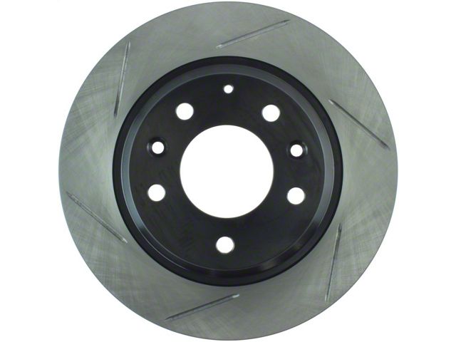 StopTech Slotted Sport Rotors are 1-piece direct replacement brake discs for factory brake systems and stock calipers that look great behind your wheels and offer significantly improved braking performance. The unique slotting aids with heat and brake dust dispersal; prevents glazing of the pads; adds bite and improves wet and dry braking performance. Built to last; the black e-coating provides protection from corrosion and the high carbon metallurgy (in most applications) offers quieter operation; better crack resistance and increased performance.