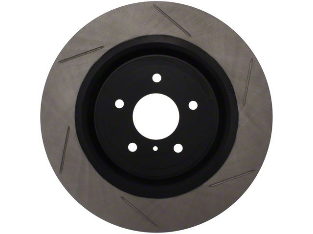 StopTech Slotted Sport Rotors are 1-piece direct replacement brake discs for factory brake systems and stock calipers that look great behind your wheels and offer significantly improved braking performance. The unique slotting aids with heat and brake dust dispersal; prevents glazing of the pads; adds bite and improves wet and dry braking performance. Built to last; the black e-coating provides protection from corrosion and the high carbon metallurgy (in most applications) offers quieter operation; better crack resistance and increased performance.