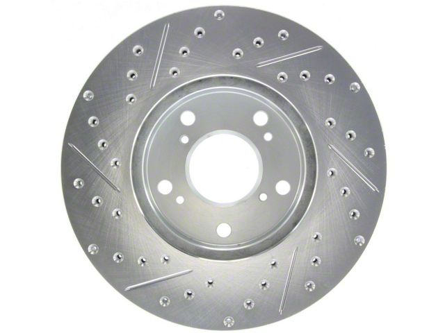 StopTech Drilled and Slotted Sport Rotors are 1-piece direct replacement brake discs for factory brake systems and stock calipers that look great behind your wheels and offer significantly improved braking performance. The unique cross-drilling and slotting aids with heat and brake dust dispersal; prevents glazing of the pads; adds bite and improves wet and dry braking performance. Built to last; the black e-coating provides protection from corrosion and the high carbon metallurgy (in most applications) offers quieter operation; better crack resistance and increased performance.