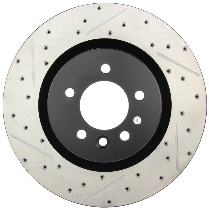 StopTech Drilled and Slotted Sport Rotors are 1-piece direct replacement brake discs for factory brake systems and stock calipers that look great behind your wheels and offer significantly improved braking performance. The unique cross-drilling and slotting aids with heat and brake dust dispersal, prevents glazing of the pads, adds bite and improves wet and dry braking performance. Built to last, the black e-coating provides protection from corrosion and the high carbon metallurgy (in most applications) offers quieter operation, better crack resistance and increased performance.