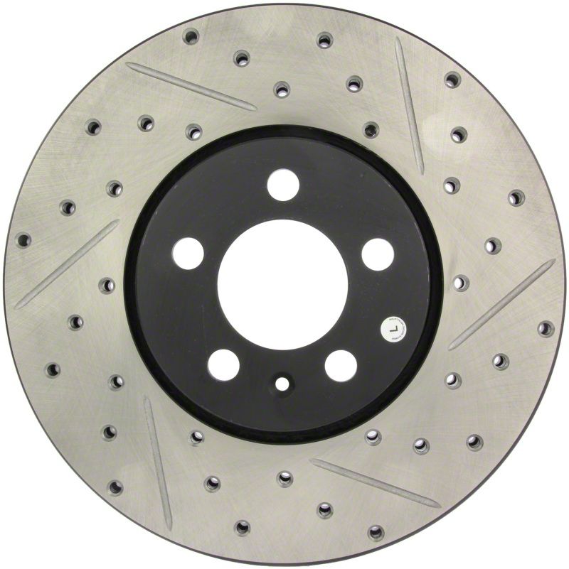 StopTech Drilled and Slotted Sport Rotors are 1-piece direct replacement brake discs for factory brake systems and stock calipers that look great behind your wheels and offer significantly improved braking performance. The unique cross-drilling and slotting aids with heat and brake dust dispersal; prevents glazing of the pads; adds bite and improves wet and dry braking performance. Built to last; the black e-coating provides protection from corrosion and the high carbon metallurgy (in most applications) offers quieter operation; better crack resistance and increased performance.