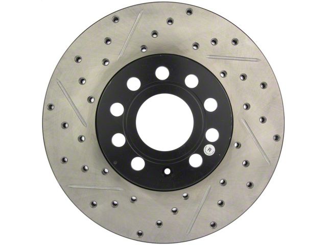 StopTech Drilled and Slotted Sport Rotors are 1-piece direct replacement brake discs for factory brake systems and stock calipers that look great behind your wheels and offer significantly improved braking performance. The unique cross-drilling and slotting aids with heat and brake dust dispersal; prevents glazing of the pads; adds bite and improves wet and dry braking performance. Built to last; the black e-coating provides protection from corrosion and the high carbon metallurgy (in most applications) offers quieter operation; better crack resistance and increased performance.