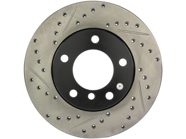 StopTech Drilled and Slotted Sport Rotors are 1-piece direct replacement brake discs for factory brake systems and stock calipers that look great behind your wheels and offer significantly improved braking performance. The unique cross-drilling and slotting aids with heat and brake dust dispersal, prevents glazing of the pads, adds bite and improves wet and dry braking performance. Built to last, the black e-coating provides protection from corrosion and the high carbon metallurgy (in most applications) offers quieter operation, better crack resistance and increased performance.