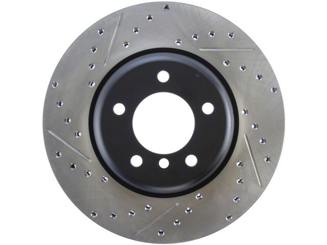StopTech Drilled and Slotted Sport Rotors are 1-piece direct replacement brake discs for factory brake systems and stock calipers that look great behind your wheels and offer significantly improved braking performance. The unique cross-drilling and slotting aids with heat and brake dust dispersal, prevents glazing of the pads, adds bite and improves wet and dry braking performance. Built to last, the black e-coating provides protection from corrosion and the high carbon metallurgy (in most applications) offers quieter operation, better crack resistance and increased performance.