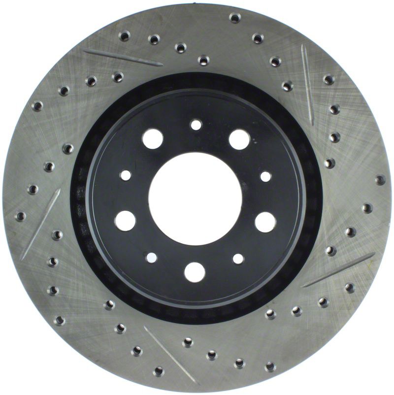 StopTech Drilled and Slotted Sport Rotors are 1-piece direct replacement brake discs for factory brake systems and stock calipers that look great behind your wheels and offer significantly improved braking performance. The unique cross-drilling and slotting aids with heat and brake dust dispersal, prevents glazing of the pads, adds bite and improves wet and dry braking performance. Built to last, the black e-coating provides protection from corrosion and the high carbon metallurgy (in most applications) offers quieter operation, better crack resistance and increased performance.