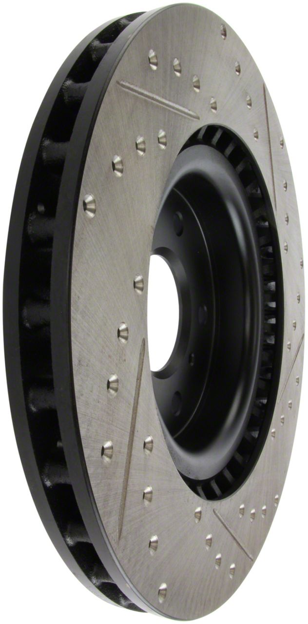 StopTech Drilled and Slotted Sport Rotors are 1-piece direct replacement brake discs for factory brake systems and stock calipers that look great behind your wheels and offer significantly improved braking performance. The unique cross-drilling and slotting aids with heat and brake dust dispersal; prevents glazing of the pads; adds bite and improves wet and dry braking performance. Built to last; the black e-coating provides protection from corrosion and the high carbon metallurgy (in most applications) offers quieter operation; better crack resistance and increased performance.