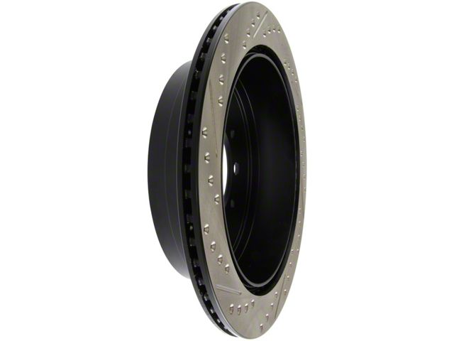 StopTech Drilled and Slotted Sport Rotors are 1-piece direct replacement brake discs for factory brake systems and stock calipers that look great behind your wheels and offer significantly improved braking performance. The unique cross-drilling and slotting aids with heat and brake dust dispersal; prevents glazing of the pads; adds bite and improves wet and dry braking performance. Built to last; the black e-coating provides protection from corrosion and the high carbon metallurgy (in most applications) offers quieter operation; better crack resistance and increased performance.