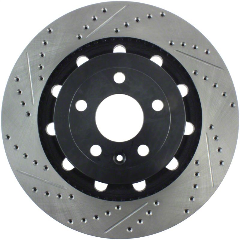 StopTech Drilled and Slotted Sport Rotors are 1-piece direct replacement brake discs for factory brake systems and stock calipers that look great behind your wheels and offer significantly improved braking performance. The unique cross-drilling and slotting aids with heat and brake dust dispersal, prevents glazing of the pads, adds bite and improves wet and dry braking performance. Built to last, the black e-coating provides protection from corrosion and the high carbon metallurgy (in most applications) offers quieter operation, better crack resistance and increased performance.
