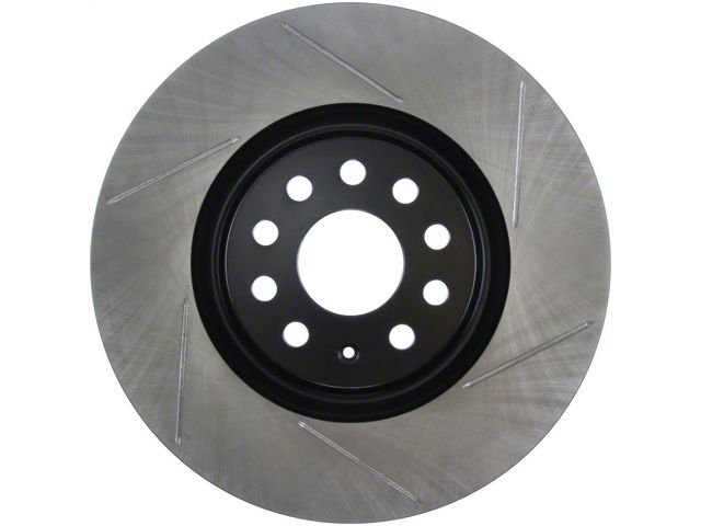 StopTech Slotted Sport Rotors are 1-piece direct replacement brake discs for factory brake systems and stock calipers that look great behind your wheels and offer significantly improved braking performance. The unique slotting aids with heat and brake dust dispersal; prevents glazing of the pads; adds bite and improves wet and dry braking performance. Built to last; the black e-coating provides protection from corrosion and the high carbon metallurgy (in most applications) offers quieter operation; better crack resistance and increased performance.