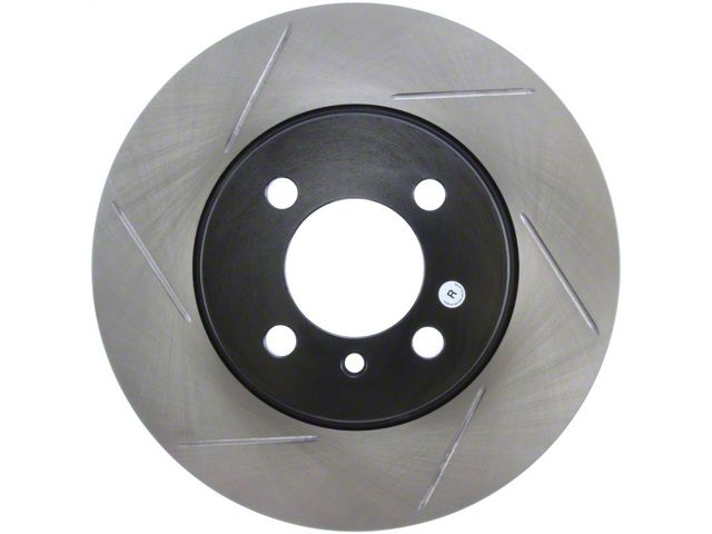 StopTech Slotted Sport Rotors are 1-piece direct replacement brake discs for factory brake systems and stock calipers that look great behind your wheels and offer significantly improved braking performance. The unique slotting aids with heat and brake dust dispersal; prevents glazing of the pads; adds bite and improves wet and dry braking performance. Built to last; the black e-coating provides protection from corrosion and the high carbon metallurgy (in most applications) offers quieter operation; better crack resistance and increased performance.