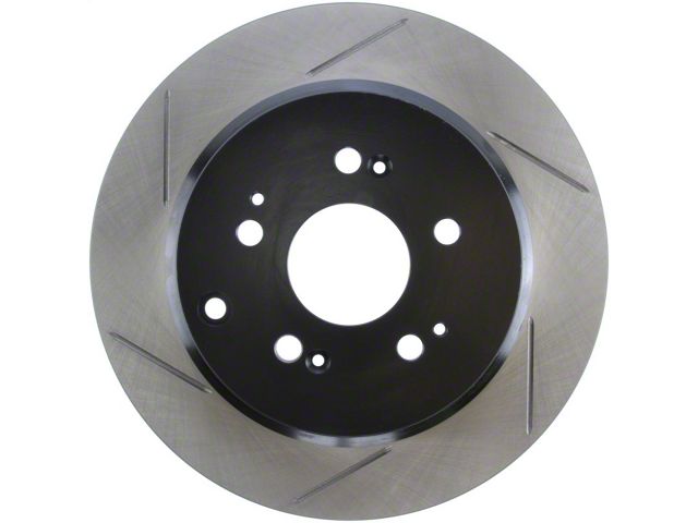 StopTech Slotted Sport Rotors are 1-piece direct replacement brake discs for factory brake systems and stock calipers that look great behind your wheels and offer significantly improved braking performance. The unique slotting aids with heat and brake dust dispersal; prevents glazing of the pads; adds bite and improves wet and dry braking performance. Built to last; the black e-coating provides protection from corrosion and the high carbon metallurgy (in most applications) offers quieter operation; better crack resistance and increased performance.