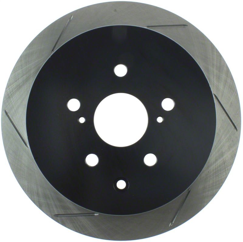 StopTech Slotted Sport Rotors are 1-piece direct replacement brake discs for factory brake systems and stock calipers that look great behind your wheels and offer significantly improved braking performance. The unique slotting aids with heat and brake dust dispersal; prevents glazing of the pads; adds bite and improves wet and dry braking performance. Built to last; the black e-coating provides protection from corrosion and the high carbon metallurgy (in most applications) offers quieter operation; better crack resistance and increased performance.