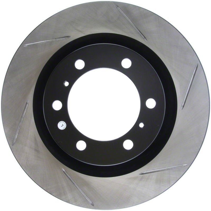 StopTech Slotted Sport Rotors are 1-piece direct replacement brake discs for factory brake systems and stock calipers that look great behind your wheels and offer significantly improved braking performance. The unique slotting aids with heat and brake dust dispersal; prevents glazing of the pads; adds bite and improves wet and dry braking performance. Built to last; the black e-coating provides protection from corrosion and the high carbon metallurgy (in most applications) offers quieter operation; better crack resistance and increased performance.