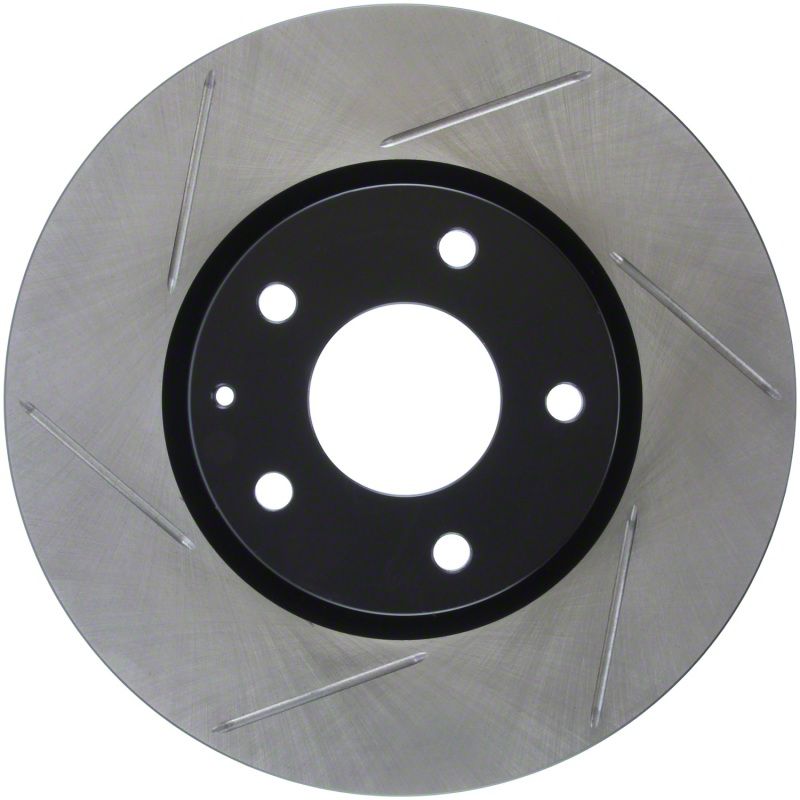 StopTech Slotted Sport Rotors are 1-piece direct replacement brake discs for factory brake systems and stock calipers that look great behind your wheels and offer significantly improved braking performance. The unique slotting aids with heat and brake dust dispersal, prevents glazing of the pads, adds bite and improves wet and dry braking performance. Built to last, the black e-coating provides protection from corrosion and the high carbon metallurgy (in most applications) offers quieter operation, better crack resistance and increased performance.