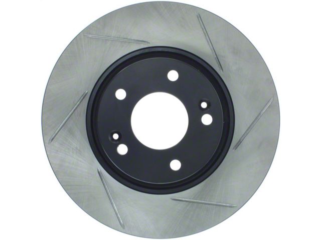 StopTech Slotted Sport Rotors are 1-piece direct replacement brake discs for factory brake systems and stock calipers that look great behind your wheels and offer significantly improved braking performance. The unique slotting aids with heat and brake dust dispersal, prevents glazing of the pads, adds bite and improves wet and dry braking performance. Built to last, the black e-coating provides protection from corrosion and the high carbon metallurgy (in most applications) offers quieter operation, better crack resistance and increased performance.