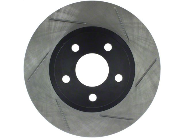 StopTech Slotted Sport Rotors are 1-piece direct replacement brake discs for factory brake systems and stock calipers that look great behind your wheels and offer significantly improved braking performance. The unique slotting aids with heat and brake dust dispersal; prevents glazing of the pads; adds bite and improves wet and dry braking performance. Built to last; the black e-coating provides protection from corrosion and the high carbon metallurgy (in most applications) offers quieter operation; better crack resistance and increased performance.
