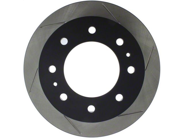 StopTech Slotted Sport Rotors are 1-piece direct replacement brake discs for factory brake systems and stock calipers that look great behind your wheels and offer significantly improved braking performance. The unique slotting aids with heat and brake dust dispersal, prevents glazing of the pads, adds bite and improves wet and dry braking performance. Built to last, the black e-coating provides protection from corrosion and the high carbon metallurgy (in most applications) offers quieter operation, better crack resistance and increased performance.
