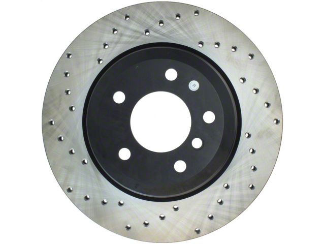 StopTech Drilled Sport Rotors are 1-piece direct replacement brake discs for factory brake systems and stock calipers that look great behind your wheels and offer significantly improved braking performance. The unique cross-drilling aids with heat and brake dust dispersal, prevents glazing of the pads, adds bite and improves wet and dry braking performance. Built to last, the black e-coating provides protection from corrosion and the high carbon metallurgy (in most applications) offers quieter operation, better crack resistance and increased performance.