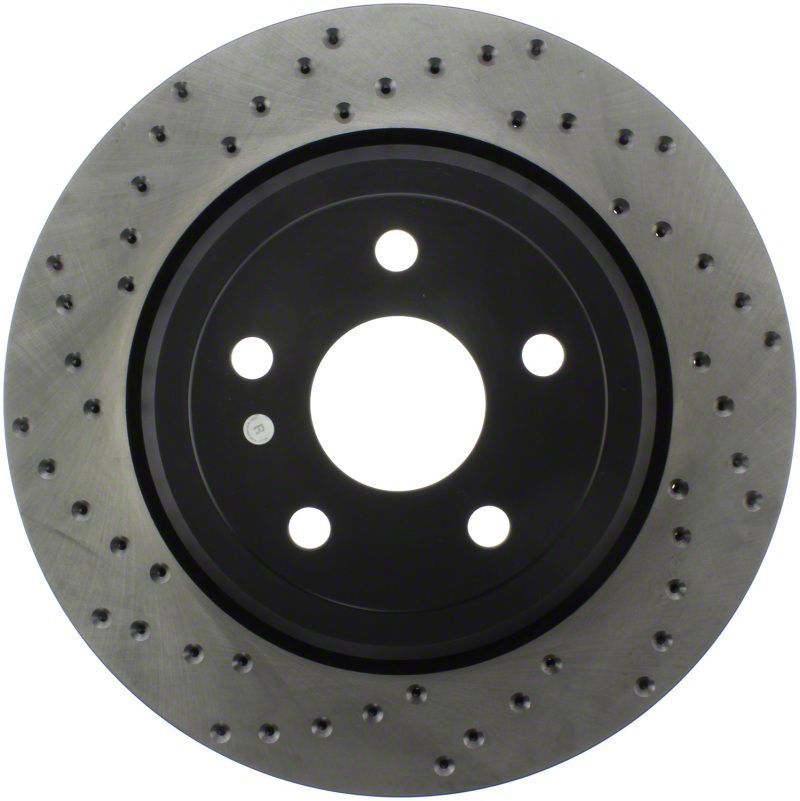 StopTech Drilled Sport Rotors are 1-piece direct replacement brake discs for factory brake systems and stock calipers that look great behind your wheels and offer significantly improved braking performance. The unique cross-drilling aids with heat and brake dust dispersal, prevents glazing of the pads, adds bite and improves wet and dry braking performance. Built to last, the black e-coating provides protection from corrosion and the high carbon metallurgy (in most applications) offers quieter operation, better crack resistance and increased performance.
