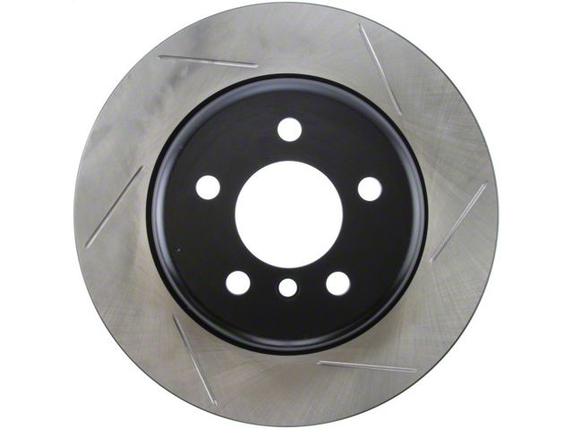 StopTech Slotted Sport Rotors are 1-piece direct replacement brake discs for factory brake systems and stock calipers that look great behind your wheels and offer significantly improved braking performance. The unique slotting aids with heat and brake dust dispersal, prevents glazing of the pads, adds bite and improves wet and dry braking performance. Built to last, the black e-coating provides protection from corrosion and the high carbon metallurgy (in most applications) offers quieter operation, better crack resistance and increased performance.