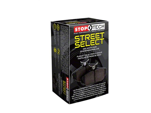 StopTech Street Select Brake Pads provide superior stopping power and reliability for passenger cars and light trucks. StopTech engineers have developed two application specific friction compounds; semi-metallic and ceramic that combine improved stopping performance while reducing noise and dust. StopTech Street Select Brake Pads are installation ready with High Performance shims attached to eliminate noise and vibration. OE style gas slots and chamfers optimize braking performance especially in repeat stop situations. Application specific hardware is included with each pad set ensuring full restoration of system performance and extended service life.